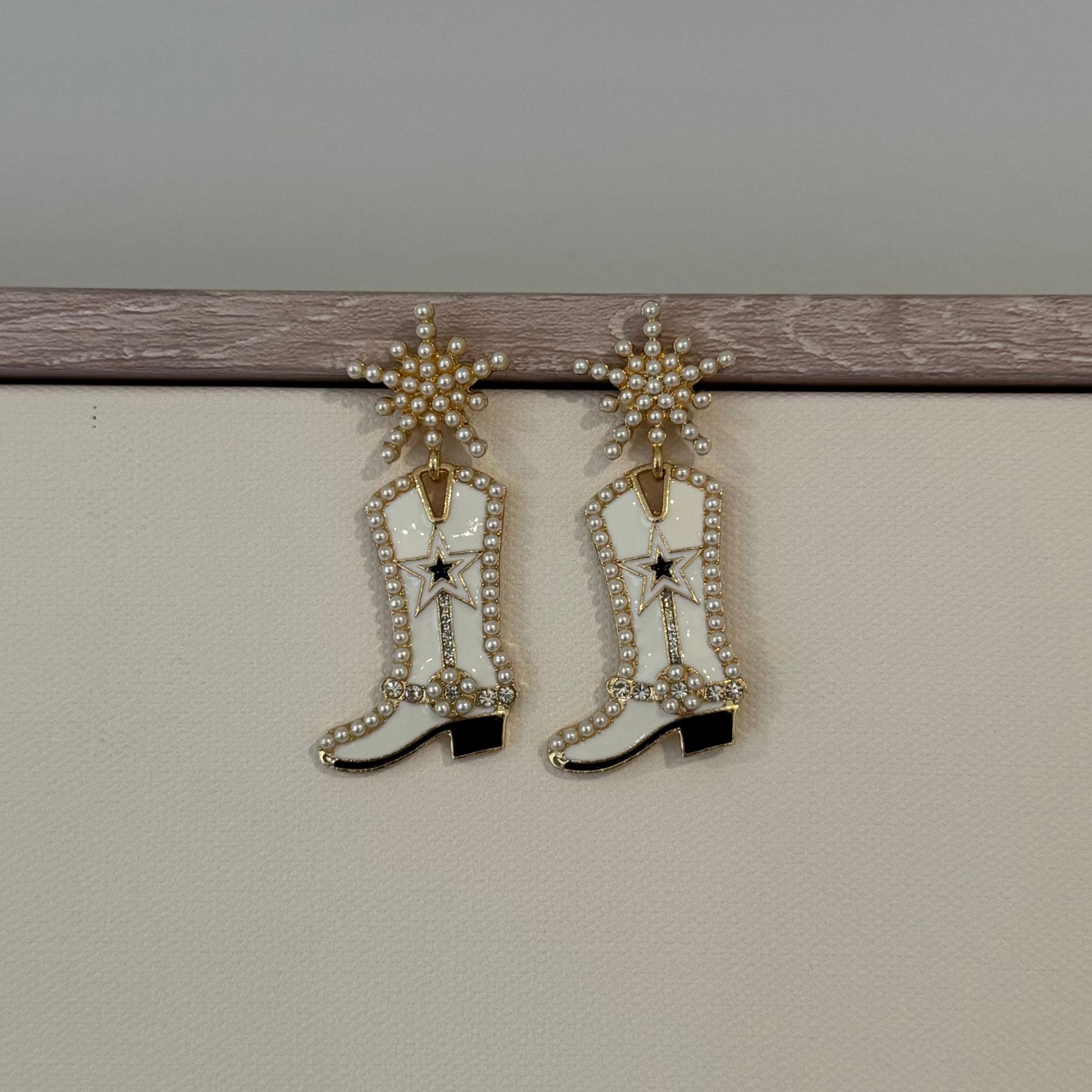 Turn heads with the warmth and shine of our Pearl Boot Drop Earrings in Gold. With a soft pear-cut silhouette and 14K gold-plated finish, these vintage-style earrings bring timeless country elegance to any outfit. Lightweight and easy to wear, they catch the light just right—perfect for golden hour at the paddock or a night out in town. A subtle statement piece that says ‘laidback luxury’, Honky Tonk style.