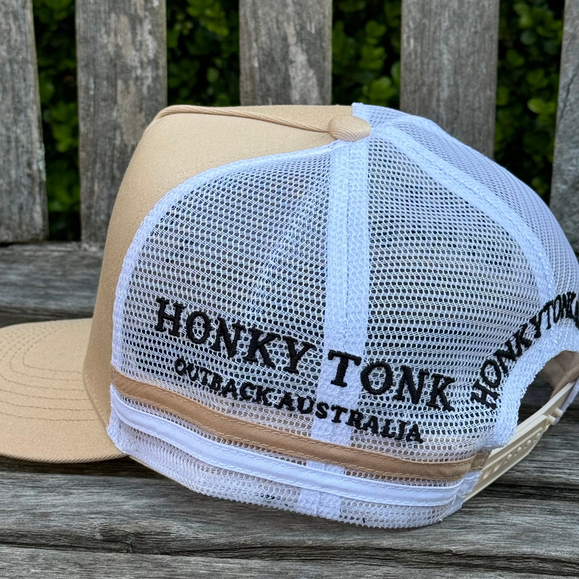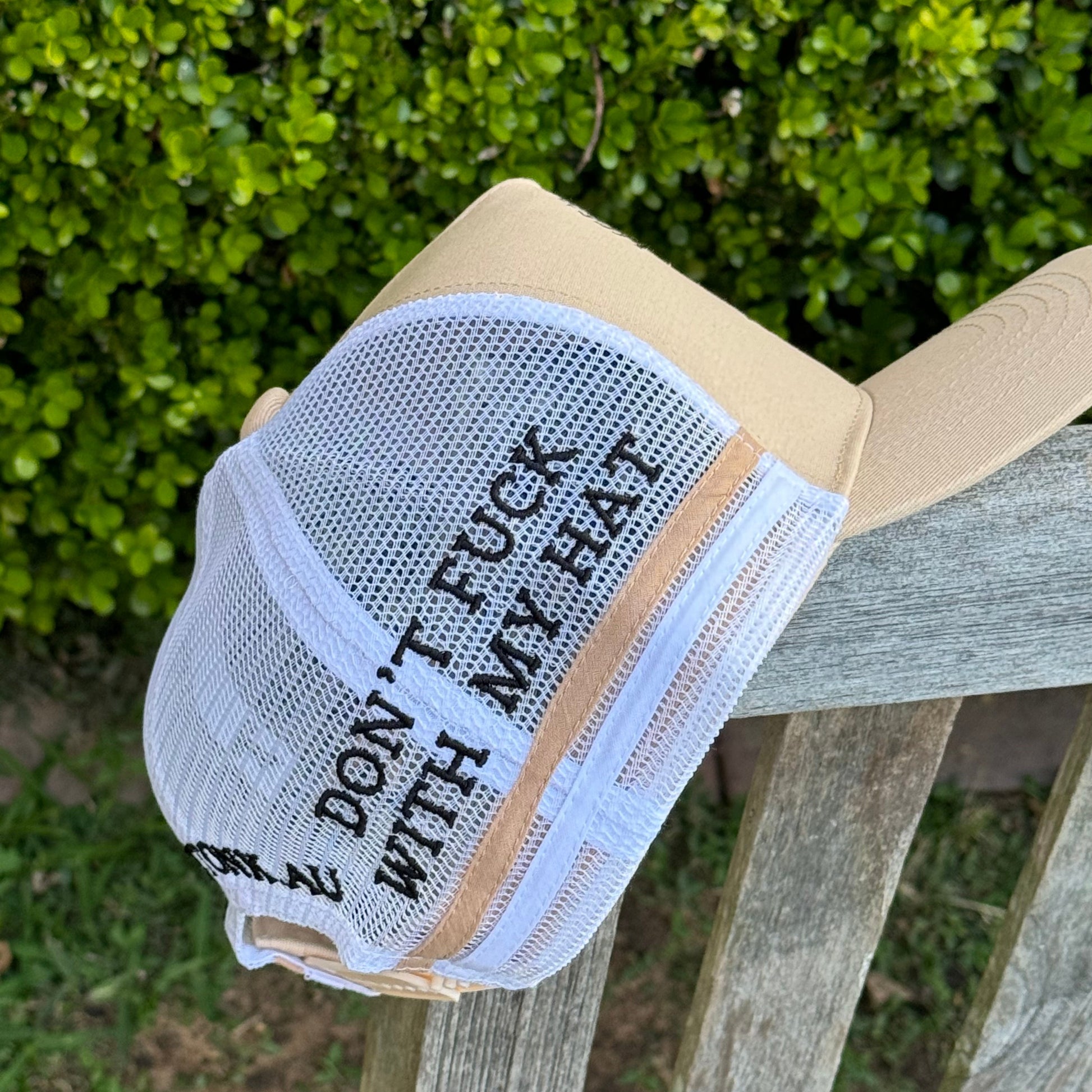 Step up your headwear game with our 'Life's Too Short Trucker Cap', designed for those who live life with a bit of attitude. The front of the cap features our signature cowboy hat logo, surrounded by the bold statement: "Life is too short for a sh*t hat." This cap isn't just a fashion choice; it's a way of life. The sides are embroidered directly onto the breathable mesh, with one side proudly displaying the "Honky Tonk, Outback Australia" logo and the other declaring, "Don't f*ck with my hat." With two clean stripes along the sides and our website domain embroidered on the back, this cap is built to turn heads. The mesh design keeps your head cool and comfortable. The snapback closure ensures a comfortable, adjustable fit for all. One size fits all.
